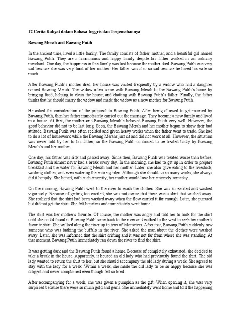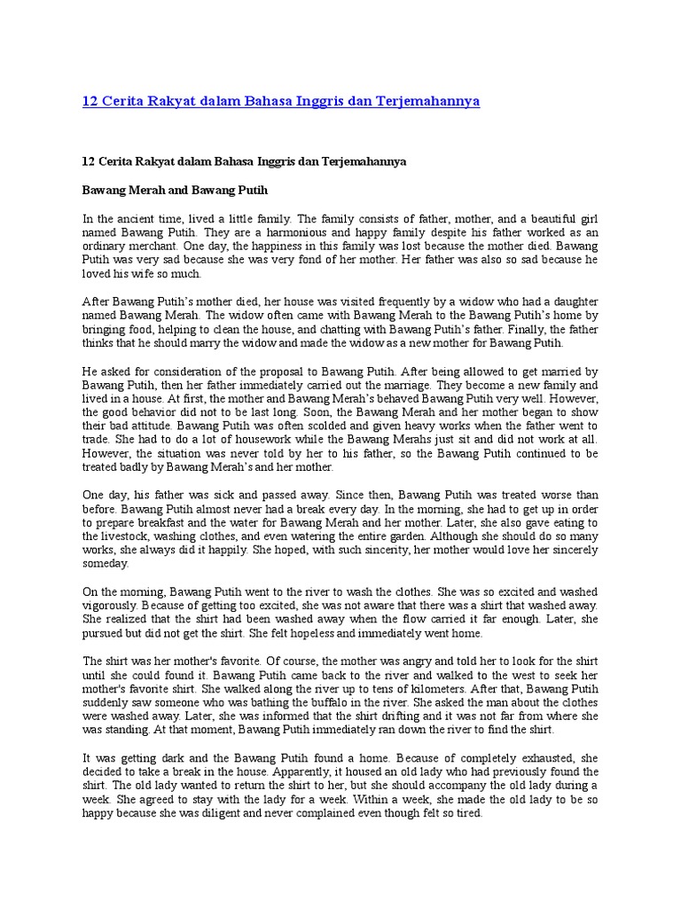 12 Cerita Rakyat Dalam Bahasa Inggris Dan Terjemahannya Pdf