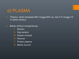 Sel-sel darah merah dibungkus dengan hemoglobin tetapi mereka tidak memiliki inti. Sel darah putih terdiri atas monosit limfosit netrofil basofil dan eosinofil. Kurniawan Tri Susilo 016 5.